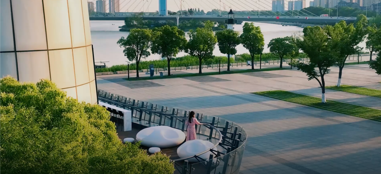 建筑緊鄰雙運河水岸,整體以玻璃幕墻圍合,形成水岸上的游輪造型。門前廣場為市民提供漫步、會談的場所,二樓露臺布置云朵狀座椅,在加強室內外聯系的同時,生動詮釋運河水岸人與自然和諧共處的生活場景。